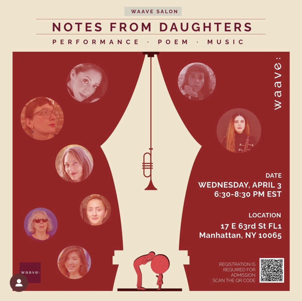 Inspired by Leah Kogen-Elimeliah’s project and her talented community of musicians, poets, and artists. An evening where participants delve into the powerful narratives and experiences shared by daughters from diverse backgrounds and cultures. Through storytelling, poetry, and dialogue, the event aims to celebrate the voices of daughters and explore the intricate dynamics of familial relationships, identity, and heritage.