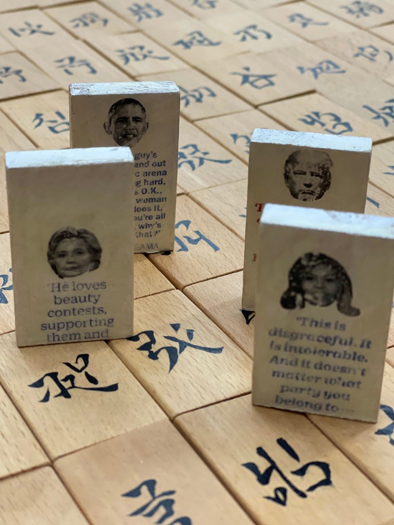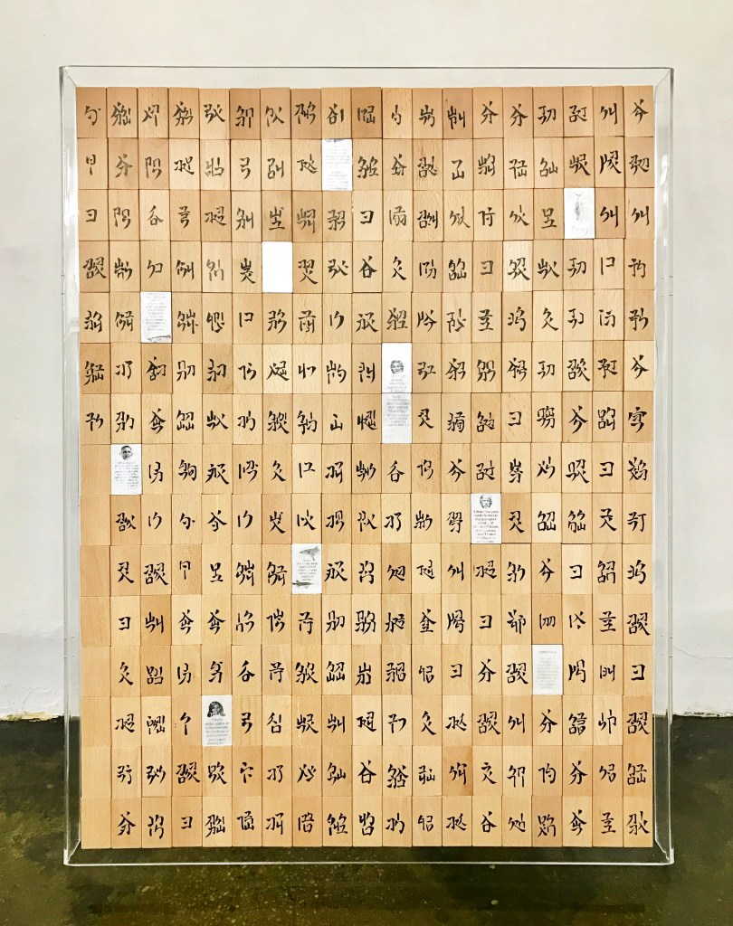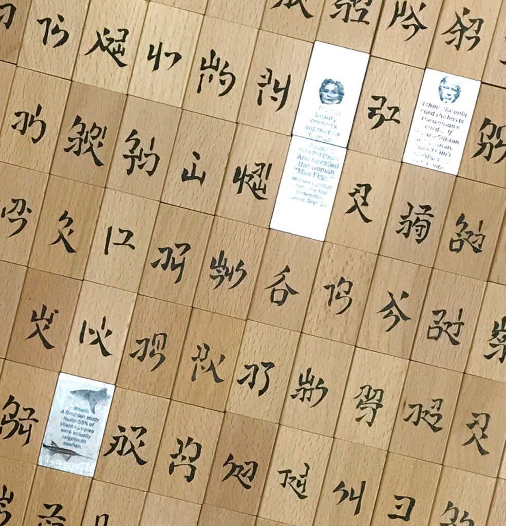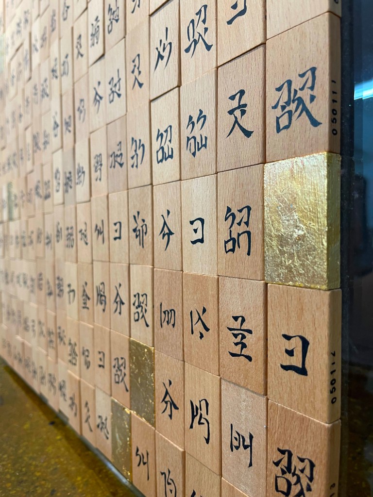 Calligraphy: The characters on the wooden block are the whole chapter 5 of Ecclesiastes in Hebrew, rendered in Chinese Kaishu calligraphy, an art practice to express my dual identity for being Chinese and Jewish.